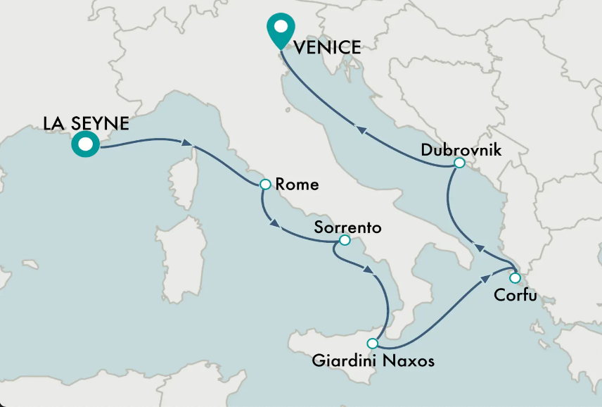 Ports: Rome, Sorrento, Taormina, Corfu, Dubrovnik