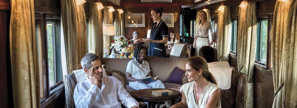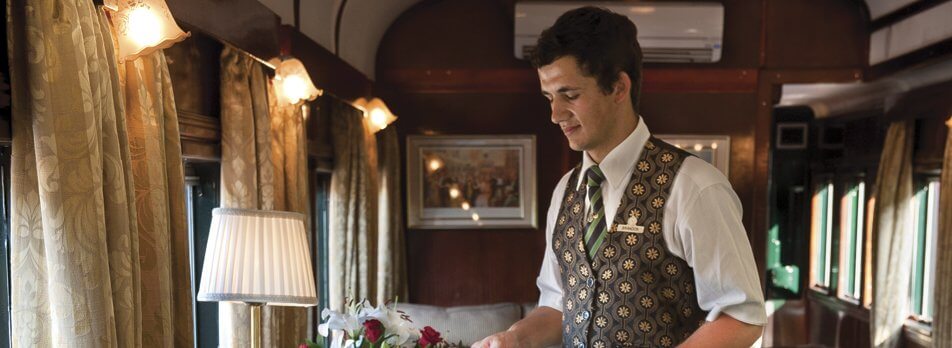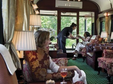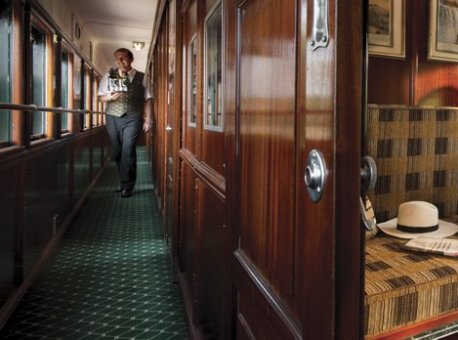The sleeper coaches are the last word in luxury. Each suite accommodates two people with the option of twin or double beds and a lounge area. They all have en-suite bathrooms in which original fittings are combined with the modern technology of hot showers, hair dryers and shaver plugs. Spacious and elegant, the Royal Suites measure 16m2 and even come with a Victorian claw-foot bathtub, which makes bath-time a memorable occasion. The Deluxe Suites measure approximately 10m2 and the Pullman Suites, which are 7m2 in size, include the identical bathroom to that of the Deluxe.